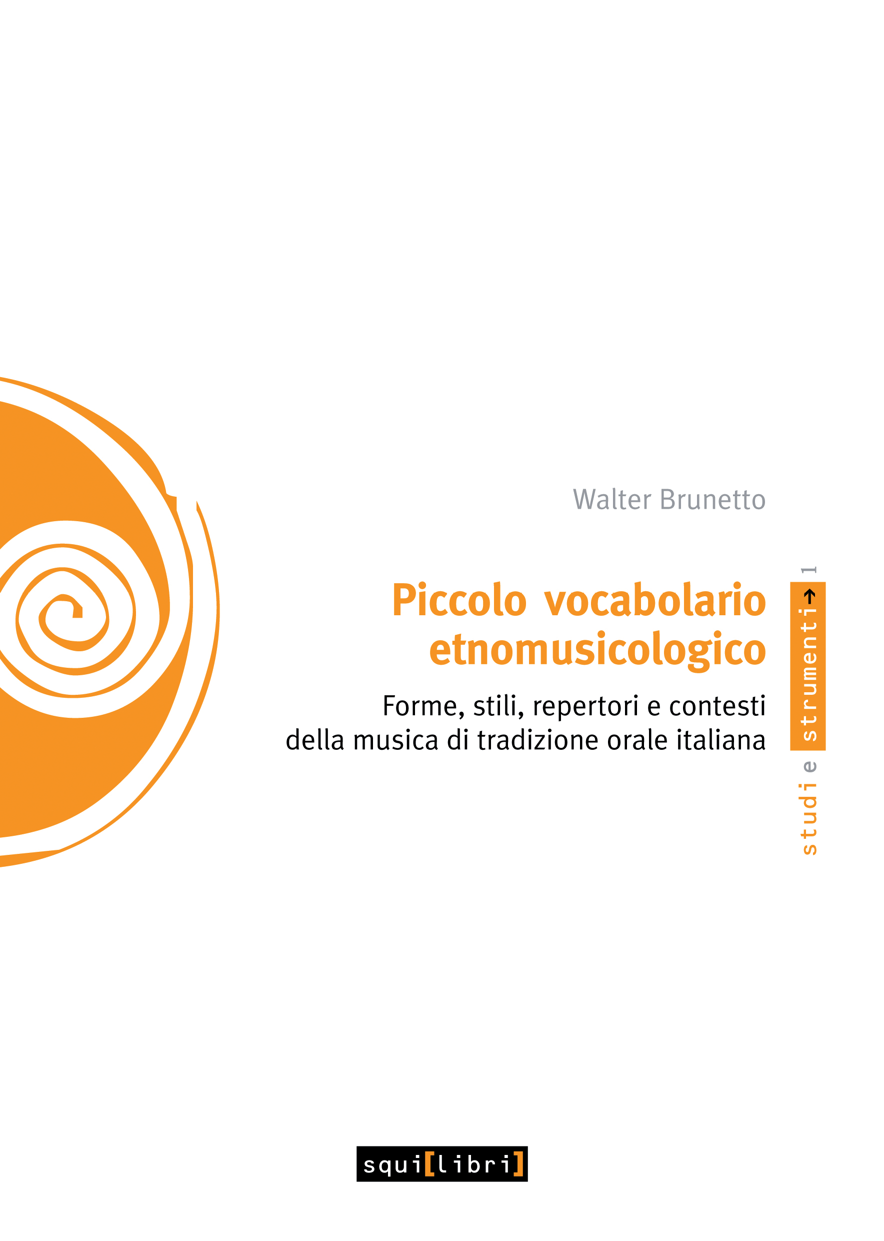 Walter Brunetto. Piccolo vocabolario etnomusicologico: Forme, stili, repertori e contesti della musica di tradizione orale Italiana (Roma: Squilibri, 2012) 253 p. A landmark reference work for the study of Italian traditional music, this volume offers a coherent, structured, and systematic lexicon devoted entirely to orally transmitted musical traditions. Presenting more than 500 entries, each accompanied by analytical notes, cross-references, and concise bibliographic indications, the Piccolo vocabolario etnomusicologico serves as a pioneering tool designed to support both the cataloguing and indexing of sound documents held in archives and documentation centers and the needs of academic research. Its extensive terminological apparatus—covering oral and written forms, genres and repertories, performance styles, functions, occasions, and cultural contexts—illuminates the richness, diversity, and vitality of Italy’s musical traditions across regions and communities. The work provides an integrated conceptual framework that foregrounds the relationships, continuities, and distinctions among practices, repertoires, and contexts. It stands as an essential guide for students, musicologists, ethnomusicologists, archivists, and cataloguers seeking to navigate the complex and multifaceted universe of Italian traditional musics.